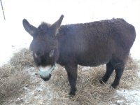 Hier matin, je me lève, je vais voir les n’ânes et ho surprise !, mauvaise surprise !, l’oeil droit de Chocolat coule fort, il est fermé… J’ai peur qu’il parte comme celui de Paul. Je le nettoie et il a arrêté de couler. Cela n’a pas été trop difficile, chocolat c’est laisser attraper, manipuler sans fuir comme il faisait avant. La petite semaine d’éducation, même si elle n’a pas été menée à terme a été profitable. Chocolat a du chopper un courant d’air, une cochonnerie dans l’oeil ? Il y avait un vent du Nord très fort et comme à son habitude, il était dehors au lieu de rentrer s’abriter !