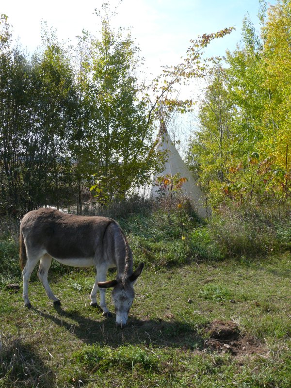 Les ânes broutent autour du tipi.
