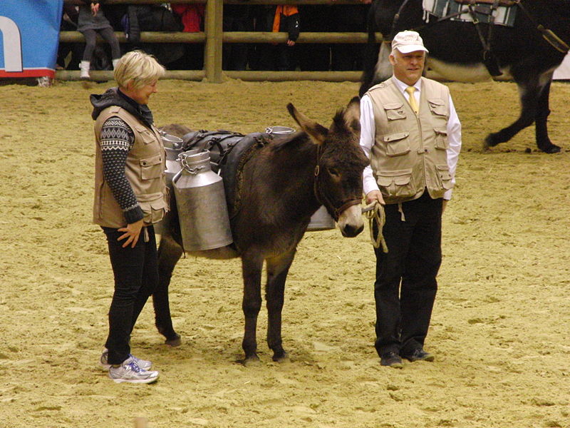 Présentation d’un âne normand bâté - Salon international de l’agriculture 2013, Paris, France