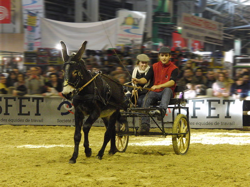 Présentation d’un âne des Pyrénées attelé - Salon international de l’agriculture 2014, Paris, France