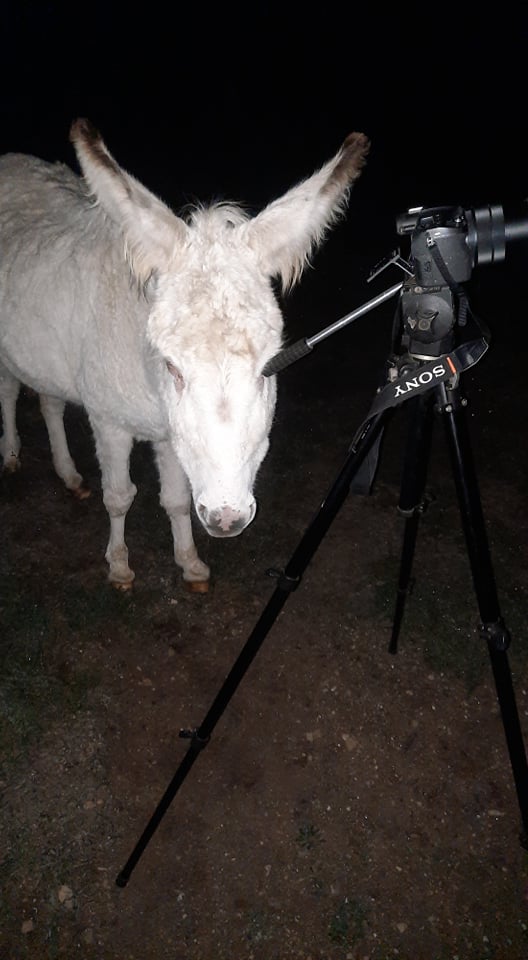 Même s’il est minuit, les ânes se tiennent au meilleur endroit pour regarder vers le Nord et voir les aurores boréales ! Molly en particulier est aux premières loges.
