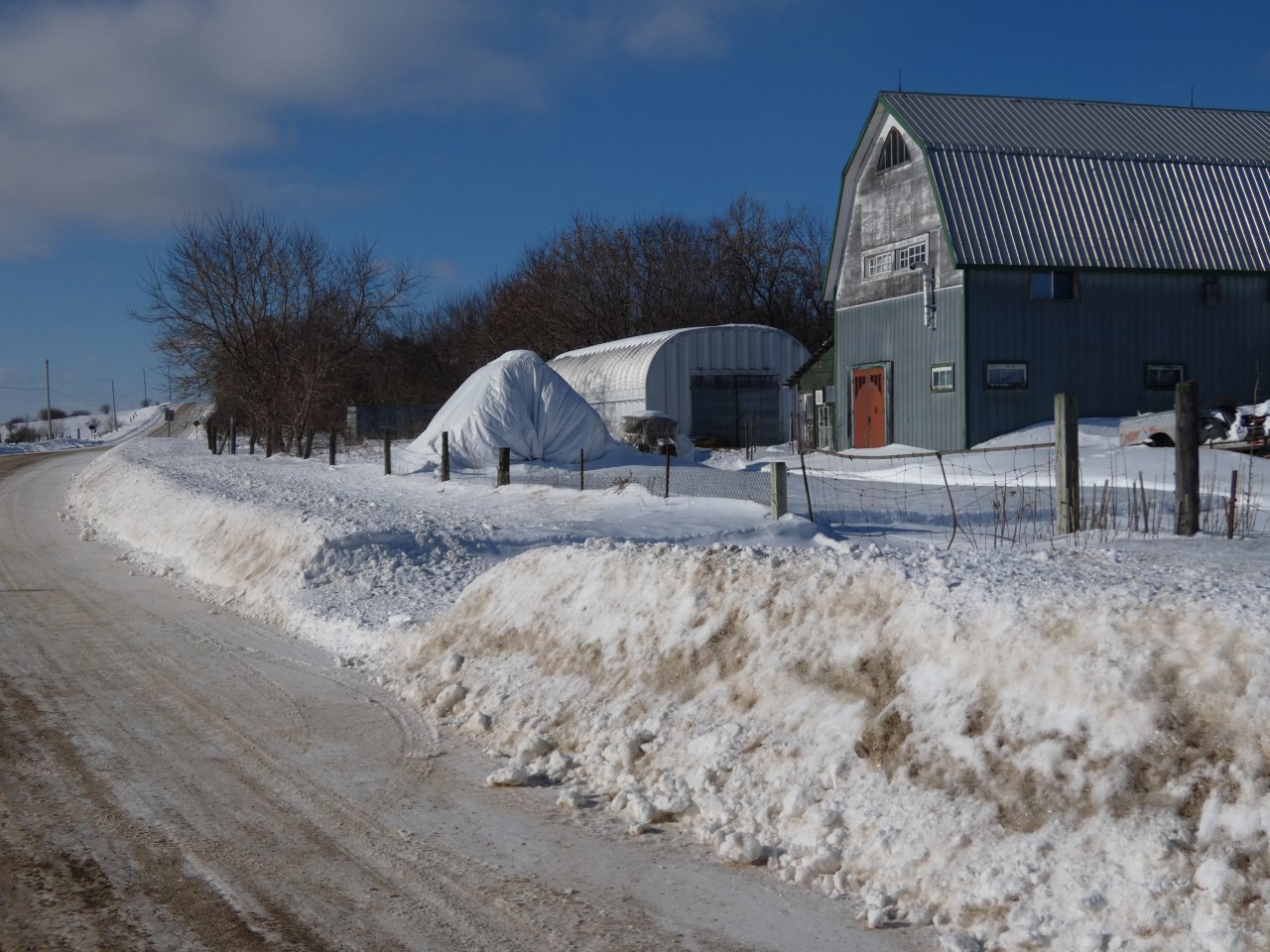 à cause des redoux, les portes des garages, de la grange sont bloquées par la glace, la neige. Je dois piocher la glace, mettre du sel pour les débloquer. L’hiver s’essouffle, moi aussi !