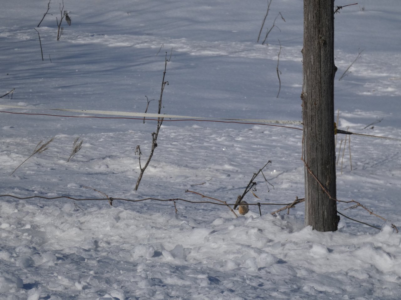 La neige est tellement épaisse que les ânes restent autour du parc d’hiver et vont de temps en temps dans le petit bois derrière grignoter des bois morts.