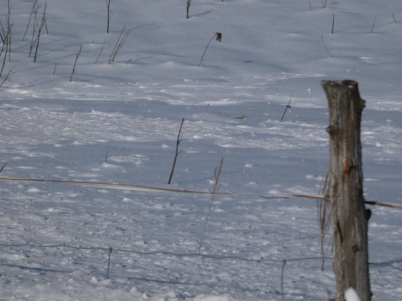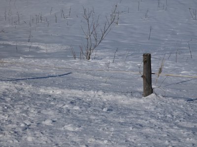 Actuellement, à certains endroits, dans les creux, la neige dépasse les clôtures ce qui fait un bon mètre à un mètre vingt. Devant chez moi, autour de la maison, il y a un bon 60 cm.