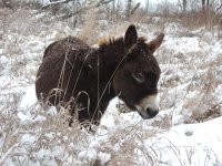 à force de gesticulations, de cris personne n’ayant de licol, cela complique les négociations, tous rentrent sauf Paul et chocolat. J’arrive à rentrer Paul avec bien du mal. Pour Chocolat, impossible. Où il se sauve, où il bloque. Après 10 mn de tours du parc digne d’une visite de maréchal ferrant, j’abandonne. Chocolat restera seul dans le froid glacial de la nuit… ils annoncent des températures sous moins 30… Mes doigts sont gelés. Je ne tiens plus.