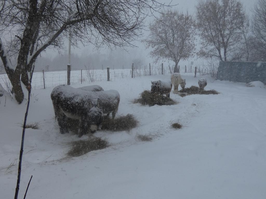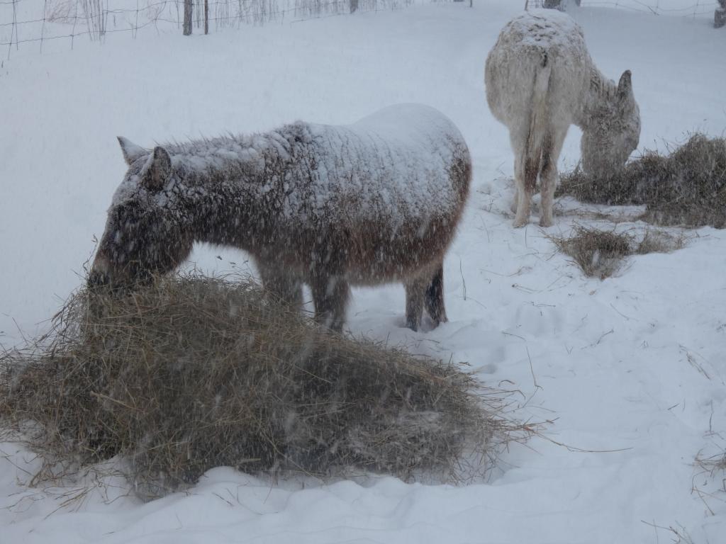 À peine dehors, les ânes se couvrent de neige !