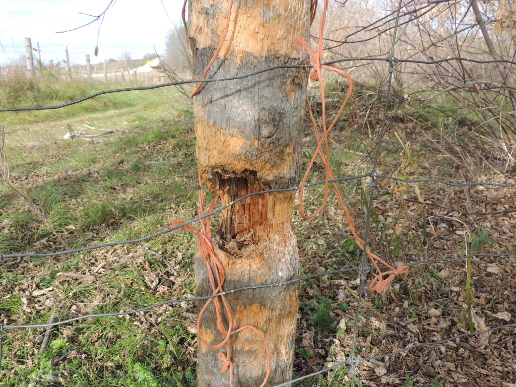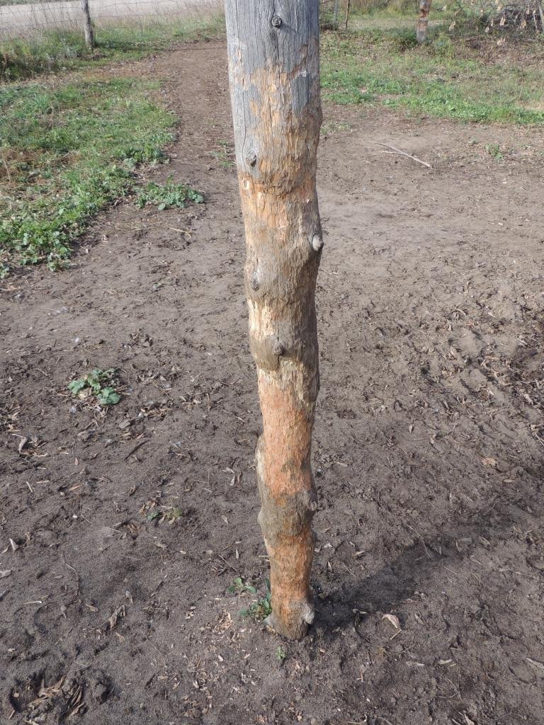 Pour leur permettre de se frotter, lors de la mue par exemple et surtout de grignoter, je plante ou ou des poteaux de pin, de tremble... et autre bois comestible pour que les ânes puissent satisfaire leur besoin de fibre et de grignotage.