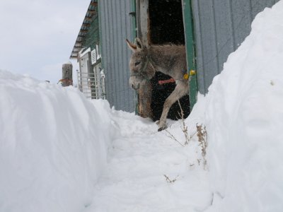 Une forte tempête a frappé le Val à l’âne. Vents violents, forte neige, rien n’a été épargné à nos ânes. Il a fallu les dégager à la pelle, ils étaient bloqués dans la grange...